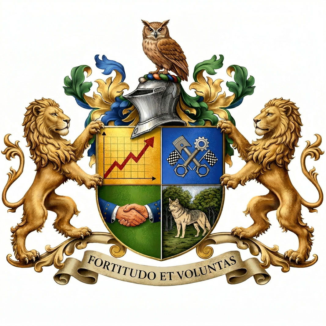 Arma: inquartato: nel 1° d'oro, al diagramma del mercato azionario in salita; nel 2° d'azzurro, al pistone in decusse con un ingranaggio con la biella, affiancate da due bandierine scaccate da formula 1; nel 3° di verde, alla fede araldica di carnagione, vestita d'azzurro con bottoni d'oro; nel 4° di cielo, al lupo in mezzo ad una foresta di querce