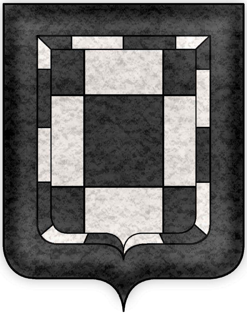 Arma: scaccato di nero e argento, alla bordura di nero; all'orlo composto di nero e argento.