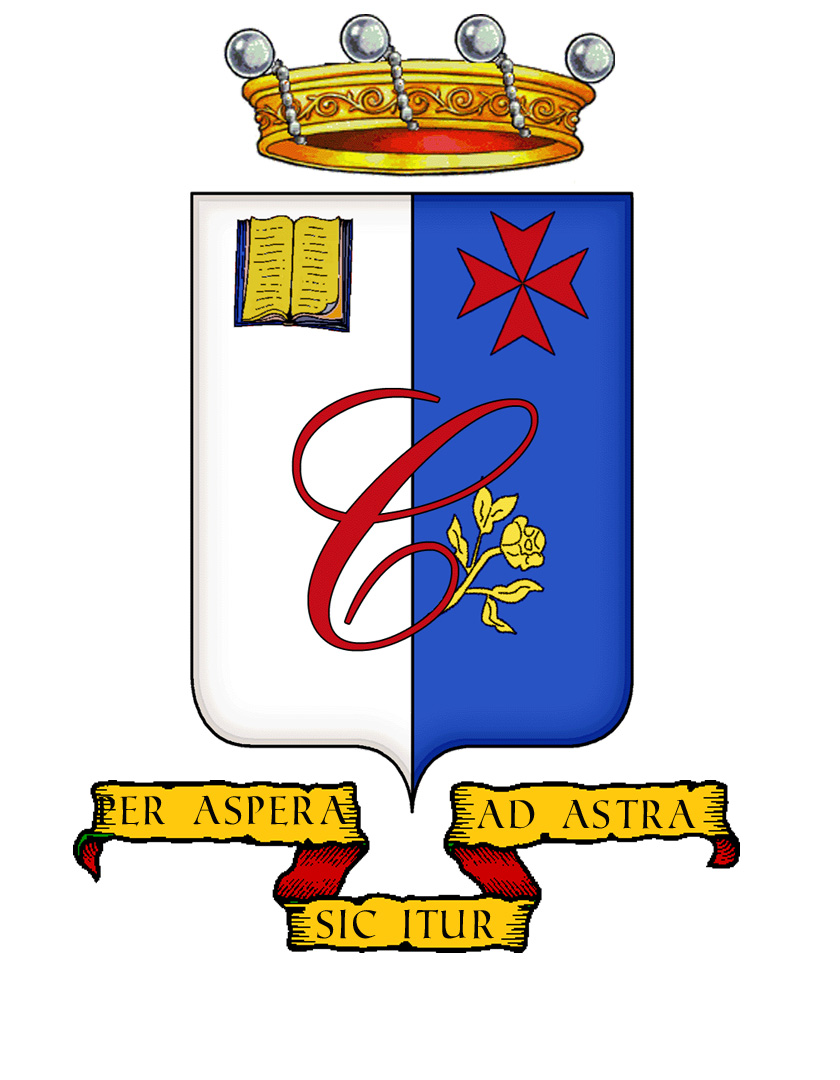 La lettera C stilizzata smaltata in smalto rosso, a simboleggiare la prima delle virtù teologali owero la Fede, nonché il Divino e la Trascendenza, i possedimenti feudali e le origini della Casata medesima.